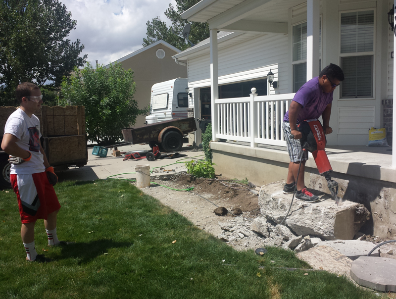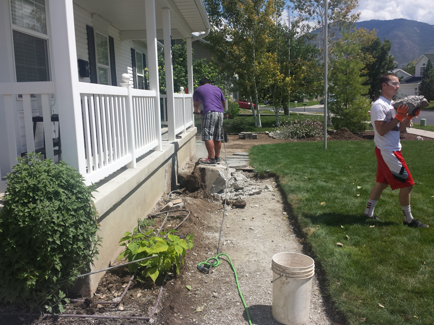 The temporary steps Richard put in are too wobbly for me to use, so I have to go around the back of the house. Richard promised me it will be done before October when Johny gets home from his mission.
