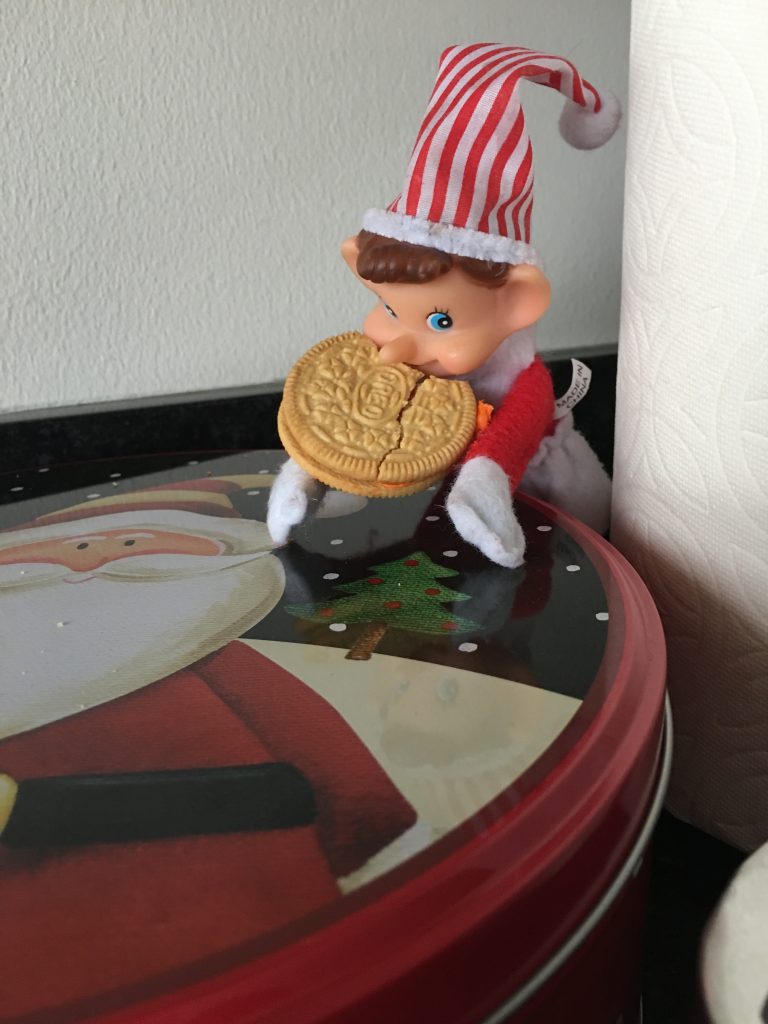 During December, I have an Elf on the Shelf out for my grandkids when they come over. When we least expect it, the Elf gets into mischief or does something funny.