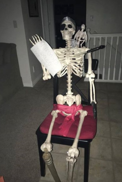 When I unlocked the door, I let out a blood-curdling scream because I walked right into the stupid skeleton sitting there waiting for me.