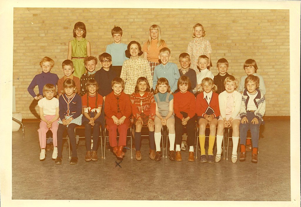 Second Grade. I am in front wearing all red. Tony is the boy in the middle row, third person from the left with curly hair.