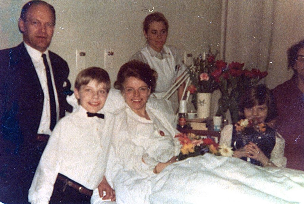 Towards the end of February, Bent came back from Canada as planned. Mom was in the hospital, but she was determined that the wedding was still going to take place. The doctor permitted Mom to have a small wedding in her room, so she arranged for a Lutheran pastor to come to the hospital and preside over the marriage to Bent.