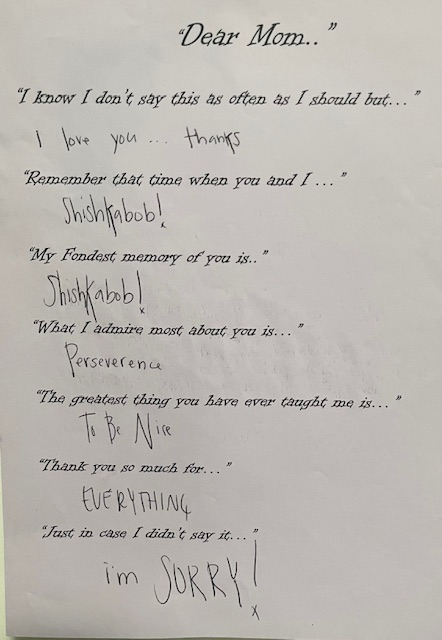 Sarah gave me this note for Mother’s Day.