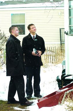 When we got home from church today, there was a message from someone telling us there was a picture and an article of Jared and his companion in the Durango News.