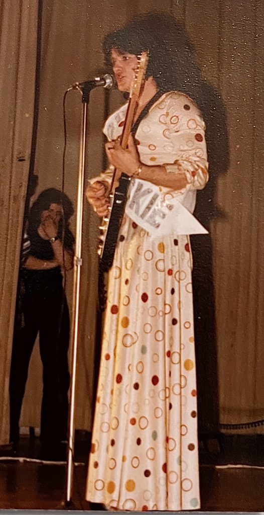 Nick singing on the stage at school. I am in the background behind the curtains.