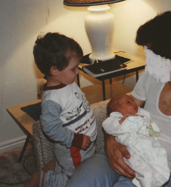 When we got home from the hospital, Richard was holding Sarah while Jared looked on in amazement at his new sister.